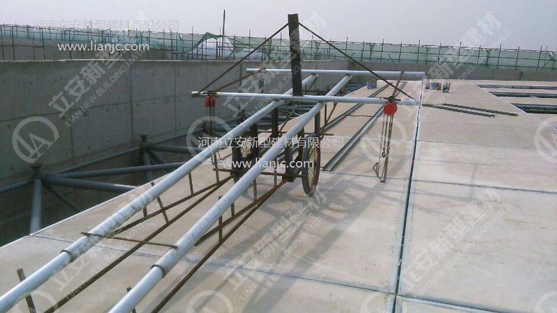 鋼骨架輕型板適用于輸煤棧橋、公共民用等建筑圍護屋面、樓面、墻面.鋼骨架輕型板由輕型鋼骨架、冷拔鋼絲網(wǎng)、改性水泥珍珠巖復(fù)合芯材(專有技術(shù))、復(fù)合抗?jié)B耐磨涂層(專有技術(shù))組成.鋼骨架輕型板集輕質(zhì)、承重、節(jié)能、防火、隔聲、泄爆、抗震等功能于一體,既保持了傳統(tǒng)鋼筋混凝土構(gòu)件安全度高、使用壽命長的優(yōu)點,又滿足了現(xiàn)代建筑對輕質(zhì)、節(jié)能、環(huán)保的要求。
